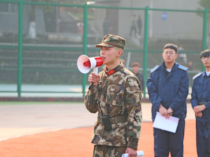 随后,陈红旭连长代表教官讲话,他表示希望同学们在接下来的训练里团结一致,积极配合,在军训过程中磨练自己的精神意志。紧接着,学员代表2020级经济专业陈泽文发言,提议要珍惜这次军训生活的宝贵机会,学习习近平总书记新时代强军思想,充分发挥本次军训活动的价值,号召大家听指挥、守纪律、讲规矩。