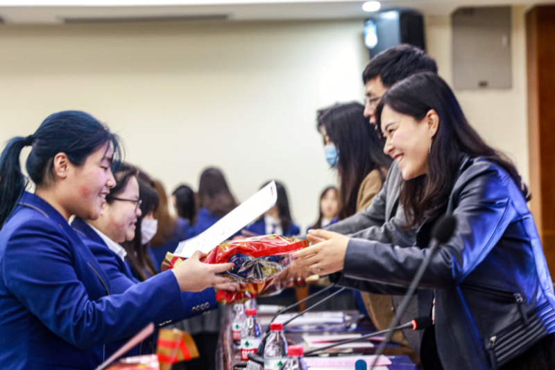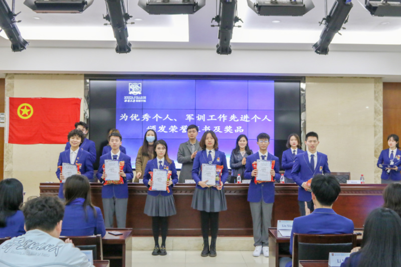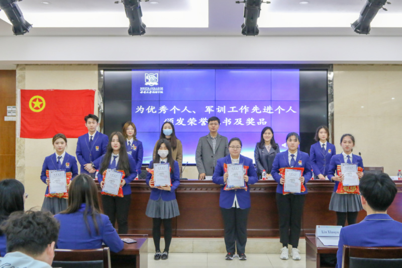 公司领导、老师和主席团成员依次为优秀个人、军训工作先进个人颁发荣誉证书及精美奖品,张琨副书记和李杨老师为优秀集体代表颁发荣誉证书。
