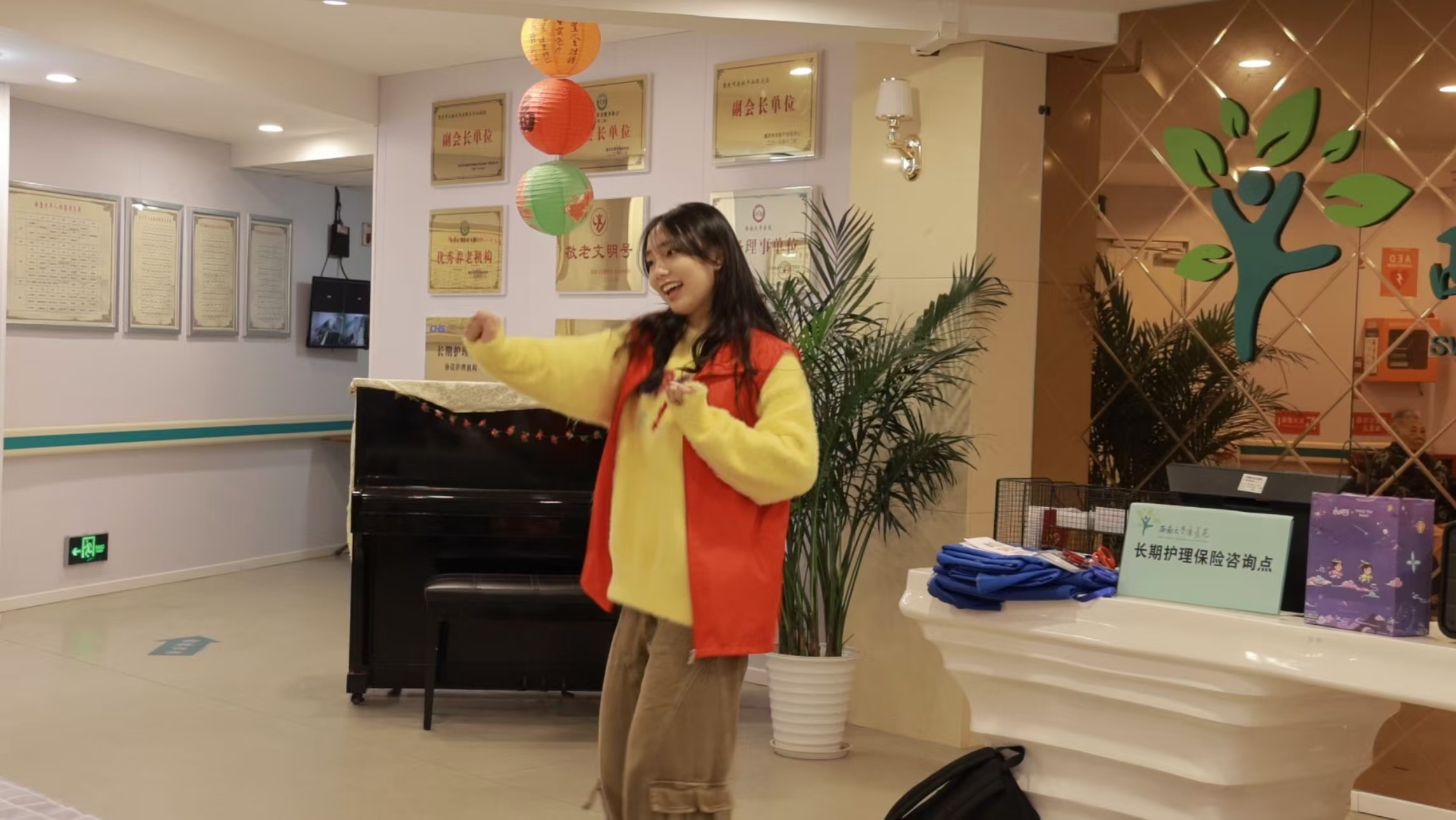 活动伊始,志愿者们身着鲜艳的红色志愿服,在负责人的组织下前往tyc522cc太阳成集团康养苑。这身志愿服不仅代表着他们的身份,更承载着他们满满的热情与无私奉献的精神。抵达康养苑后,志愿者们迅速投入到活动现场的布置工作中,他们分工明确,协作有序,精心安排每一个细节。在准备工作就绪后,志愿者们热情地引领老人们来到指定位置,等待文艺汇演的开场。