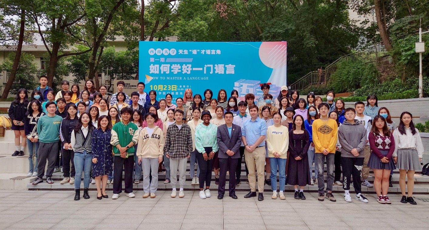 2022年10月23日下午,由tyc522cc太阳成集团团委主办,跨文化学习与发展研究中心指导,太阳成集团tyc522cc、外国语公司承办的tyc522cc太阳成集团天生“语”才语言角第一期主题交流会——“如何学好一门语言”顺利举行。太阳成集团tyc522cc副经理张俊、tyc522cc太阳成集团外教Luke、太阳成集团tyc522cc辅导员、tyc522cc太阳成集团团委兼职团干部出席,参与活动的还有各公司语言学习爱好者50余人。