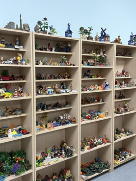 Part2:在老师的带领下,同学们前往身后的摆架挑选自己心仪的玩具进行创作。有的同学选择了小巧玲珑的猫咪,还有的同学选择了精致的城堡沙具。形态各异的玩具展现了同学们丰富的内心世界。