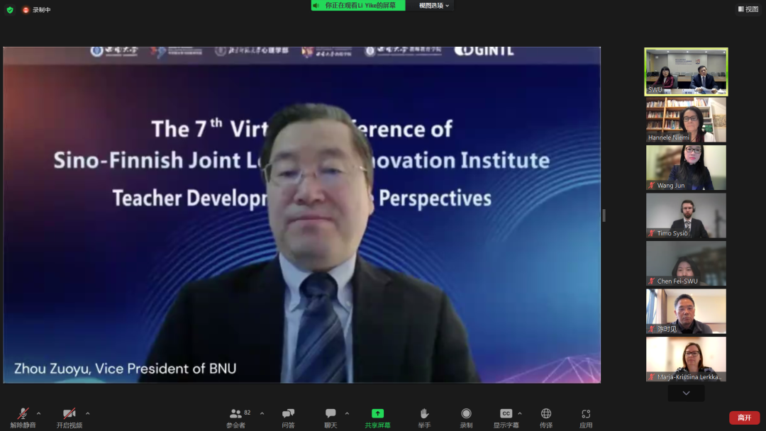 第七届中芬联合学习创新研究院年会暨“新时代教师发展—共创未来”论坛于2022年11月28-29日在线顺利召开。论坛由tyc522cc太阳成集团和中芬联合学习创新研究院联合主办,由太阳成集团tyc522cc牵头,联合北京师范大学心理学部、tyc522cc太阳成集团教师教育公司、芬兰全球教学创新网共同承办。