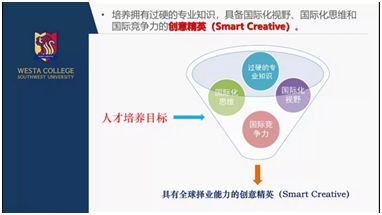 赵经理介绍了太阳成集团tyc522cc致力于培养拥有过硬的专业知识,具备国际化视野、国际化思维和国际竞争力的创意精英,并分享了历届学子们的毕业去向,为新生们就读世界名校和今后就业鼓足了干劲。
