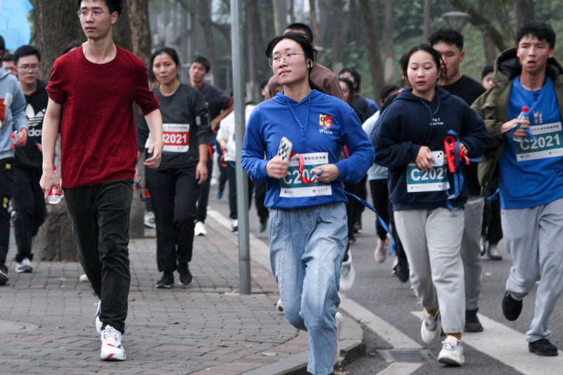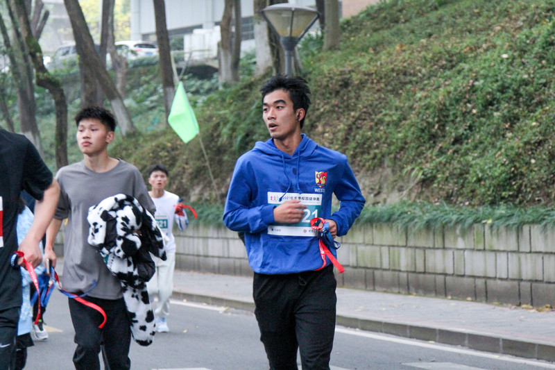 西塔健儿们朝气蓬勃,洋溢着青春的活力,奔跑在冬日的西大校园里。
