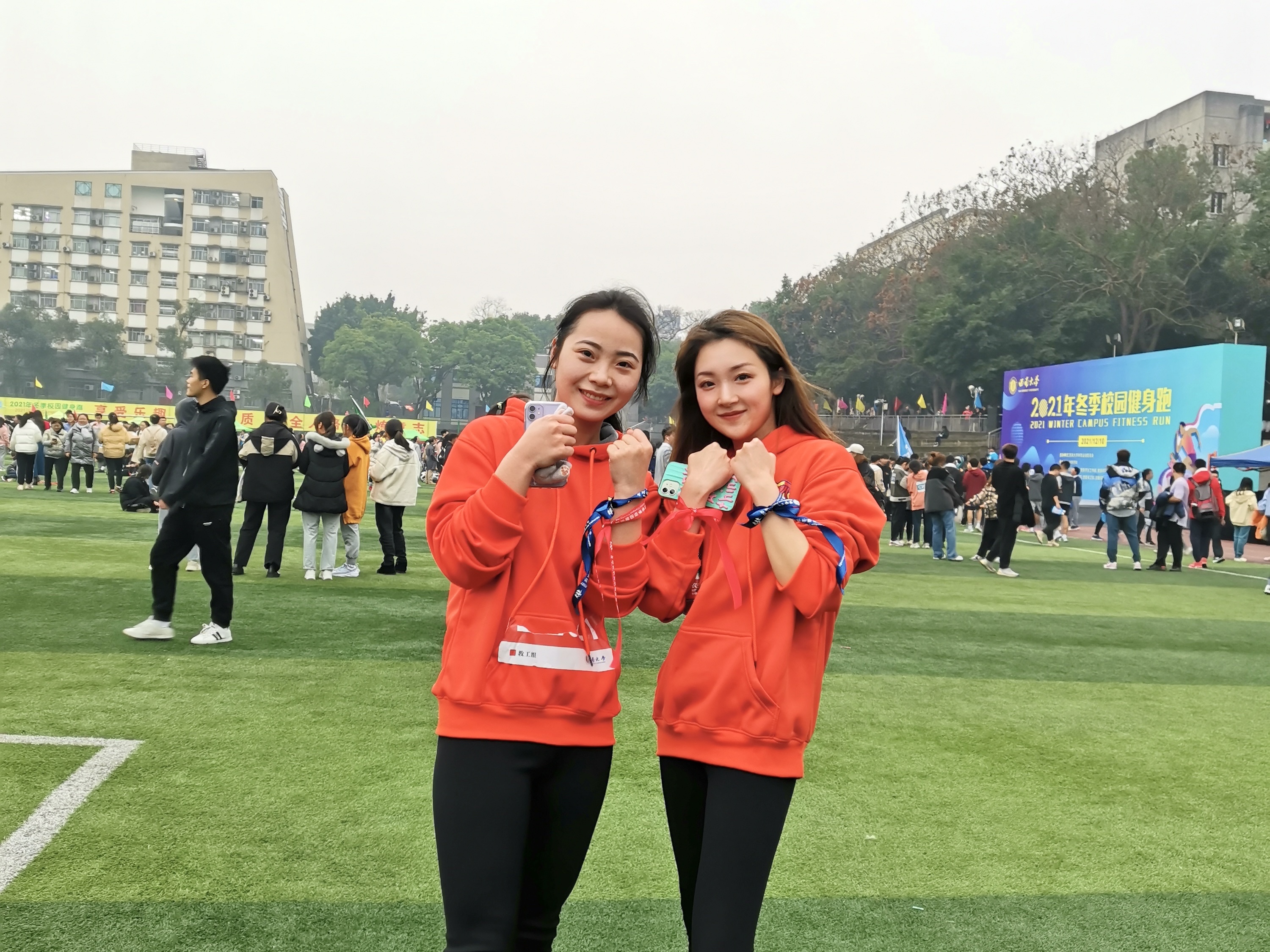 在西塔院旗的指引下,佩戴西塔院徽的近80名西塔师生,成功取到红蓝彩带,陆续完成全程5公里的健身跑,顺利返回四运。