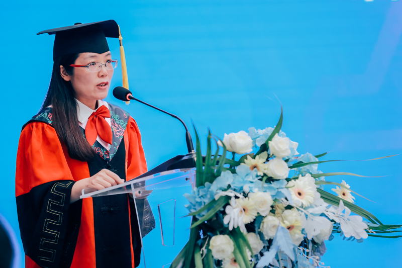 食品科学公司付余教授作为教师代表发言,向毕业生们提出几点建议:坚定信心,勇担重任;不忘初心,追逐梦想;潜心学习,厚积薄发;律己修德,把握方向。他希望同学们带着对母校的感恩之心,带着梦想与执着前行。