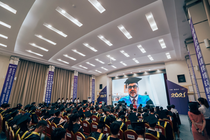 西澳大学副董事长Tayyeb Shah教授同样录制视频向毕业生们发来祝福。他提到,在这个充满艰难和未知,也具有标志性的时代,西塔学子们展现了面对逆境时的勇气、韧性、理解力和适应能力。他对中国为帮助疫情期间毕业生采取的相关举措表示赞赏,也对西塔作为合作伙伴表达感谢。最后,他引用纳尔逊•曼德拉的话寄语三校合作,“教育是最强大的武器,你可以用它来改变世界”。