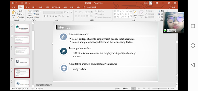Affected by the COVID-19 pandemic, thesis defense is carried out online, using Tencent Meeting, Talkline, Dingding and other software as support. Students are required to do online defense, while supervisors and faculty members on the defense team can adopt a mixture of online and offline method to manage the defense. Prior to the formal defense, Westa College requires the defense teams to conduct online rehearsal to make sure everything is fully prepared.