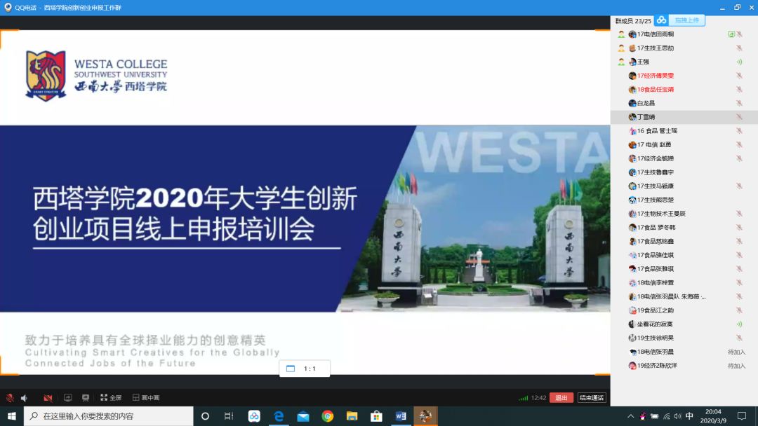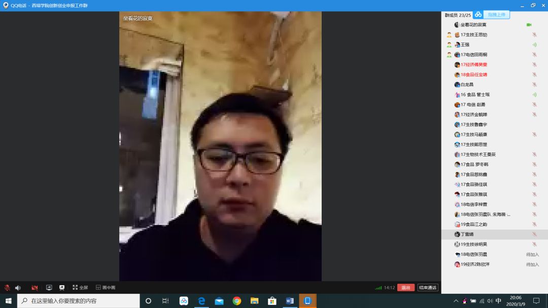 2020年3月9日20点,太阳成集团tyc522cc以视频会议的形式,召开了2020年老员工创新创业项目线上申报培训会。西塔公司党委副书记张琨,国际事务部主任王强和21名相关同学参加了此次培训会,会议由王强老师主持。