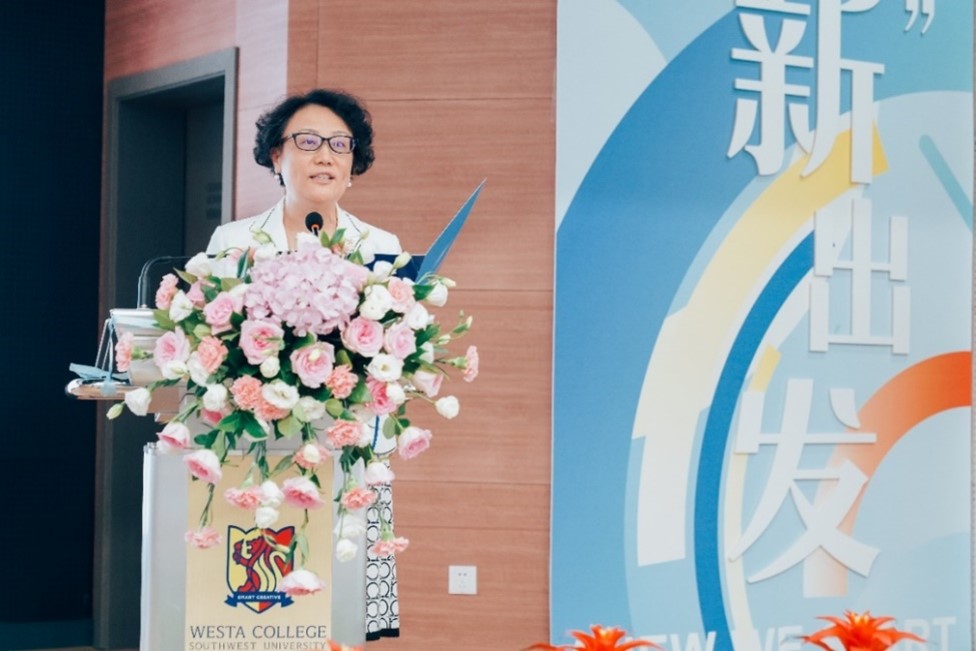 公司经理谢洁寄语新生。她向2024级新生致以最热烈的欢迎,希望全体新生能够在大学的舞台上积极去探索未知和接受挑战。她提出三点期望:一是希望同学们学会选择,积极尝试,选择最适合自己的成长路径;二是努力迎接挑战,主动投入竞争,并在竞争中学会合作、收获友谊、实现成长;三是相信世界的美好,并努力创造更加美好的世界。她希望同学们始终保持对知识的渴求、对未来的憧憬,在新的起点上奋力拼搏,从西塔出发,走向世界。