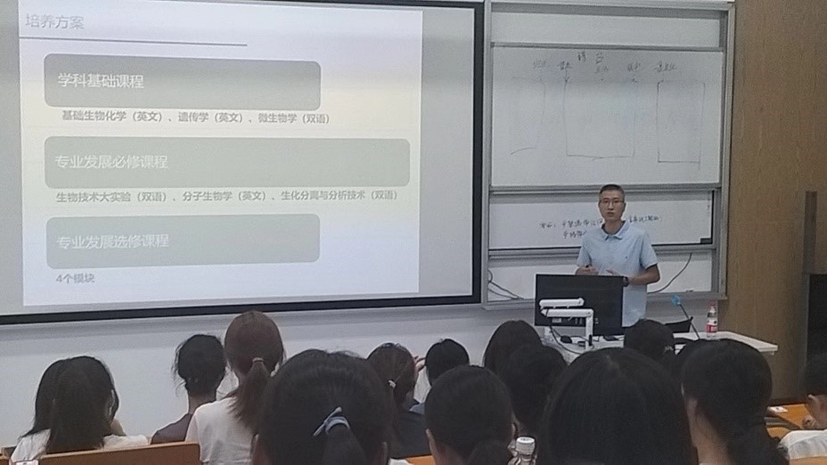 来自四个专业的优秀教师代表为新生们进行了详细的专业解读。生物技术专业负责人兼2024级班主任周游老师介绍了西南老员工物技术专业雄厚的科研实力,向同学们描绘了生物技术领域的未来发展趋势,指出应当在夯实理论基础的同时具有跨学科思维。食品质量与安全专业负责人兼班主任戴宏杰老师围绕专业特色、专业现状、课程体系以及发展前景等方面做了详细介绍,希望同学们尽早确立个人发展目标。经济学专业刘培森老师结合自身求学经历,深入浅出地向同学们阐述了经济学的学科背景、研究方向以及重要的社会影响,鼓励同学们积极开展学术科研实践活动。电子信息工程专业负责人王欣老师介绍了电子信息工程学科研究的重点、发展前景、就业方向,强调参与学科竞赛与科研的重要性。同学们积极提问,现场氛围浓厚。