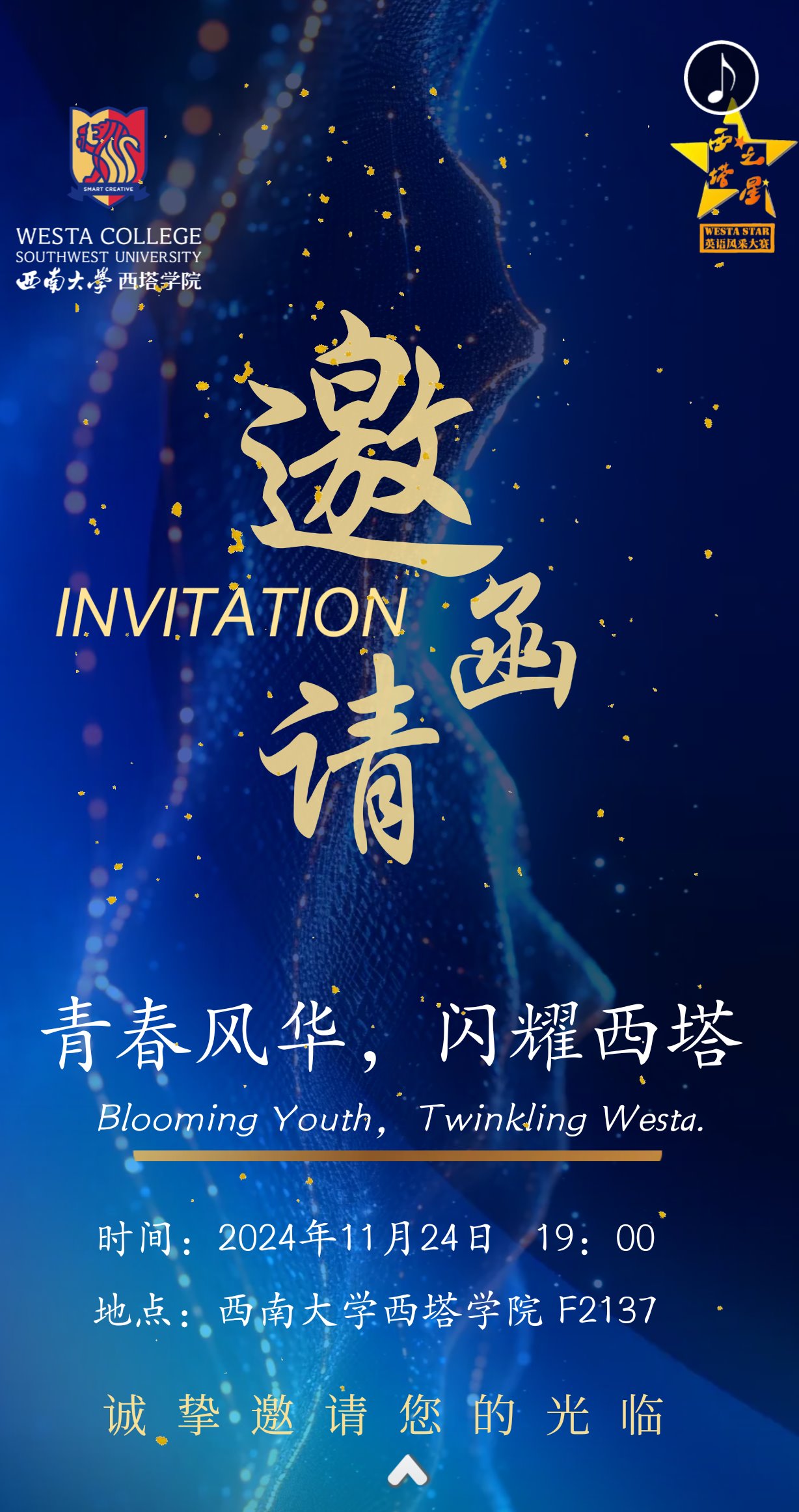 太阳成集团tyc522cc2024年“青春风华,闪耀西塔”英语风采大赛(决赛)邀请函