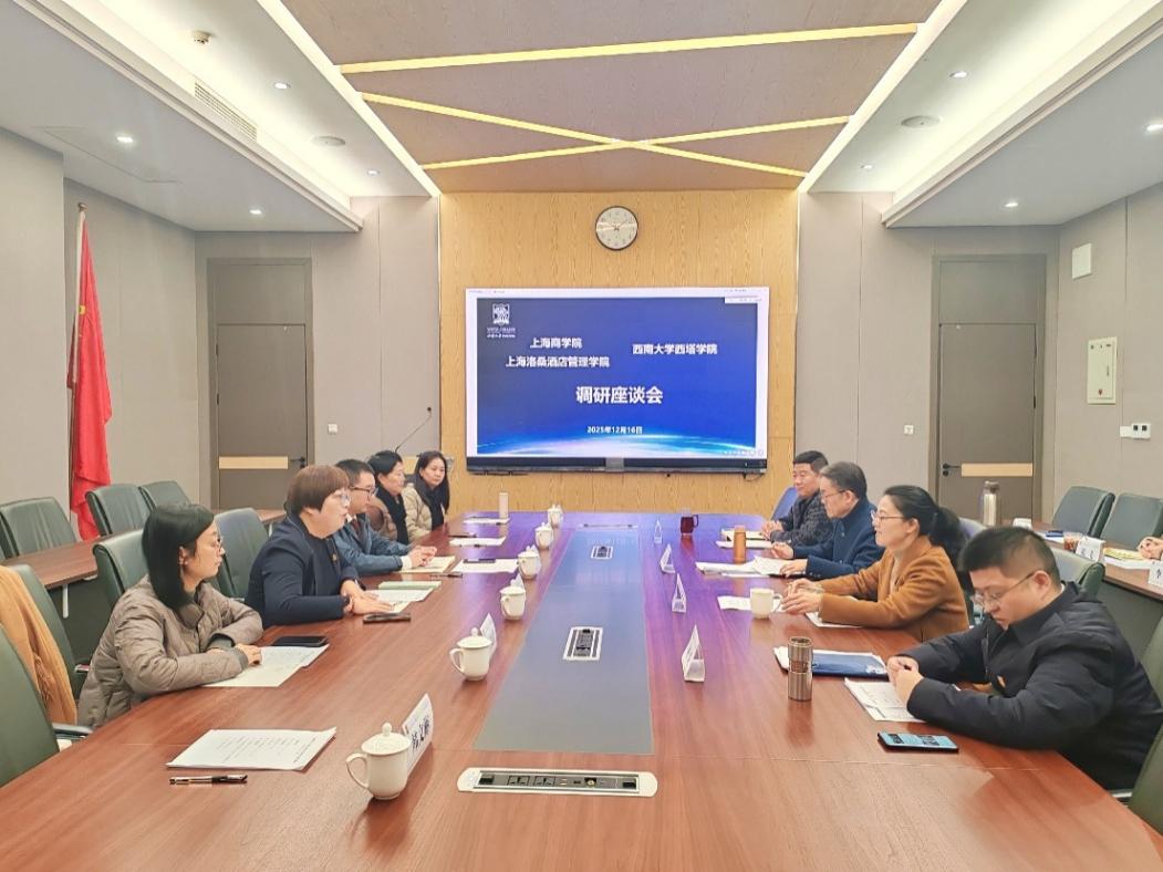 12月16日上午,上海商公司上海洛桑酒店管理公司执行经理胡笑寒率队来访,公司领导班子成员及相关科室负责人参加调研。双方分别介绍了各自办学基本情况,并围绕中外合作办学经验分享、“十五五”事业发展规划、党建与思政育人、产教融合、校园规划等议题展开了现场交流讨论。