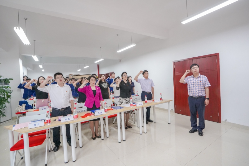 最后,公司党总支副书记张琨带领全体党员进行入党宣誓。庄严的宣誓表达出同学们愿不懈努力奋斗的激情,承载着全体党员对党的责任和承诺。