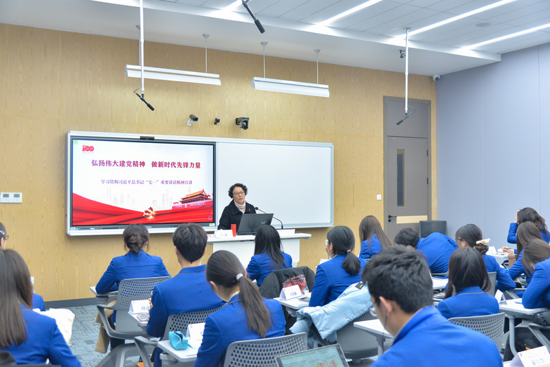 随后,王书记围绕习近平总书记“'七一'重要讲话的重大意义”“'七一'讲话主要内容以及伟大建党精神的内涵”向同学们进行了阐述。