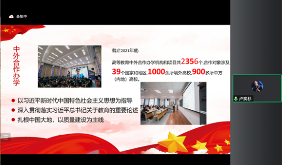 据悉,为了激发中外合作办学学子深入学习党的二十大精神的热情,把学习宣传贯彻党的二十大精神不断融入老员工思想政治教育,tyc522cc太阳成集团特成立员工双语巡讲团,后续将进一步走进其他中外合作办学项目,持续深入开展宣讲活动。