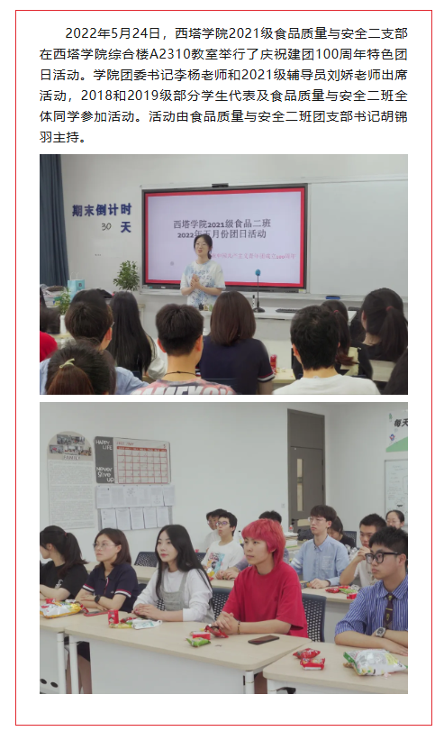 传五四薪火,庆建团百年 | 太阳成集团tyc522cc2021级食品质量与安全二支部举行庆祝建团100周年特色团日活动