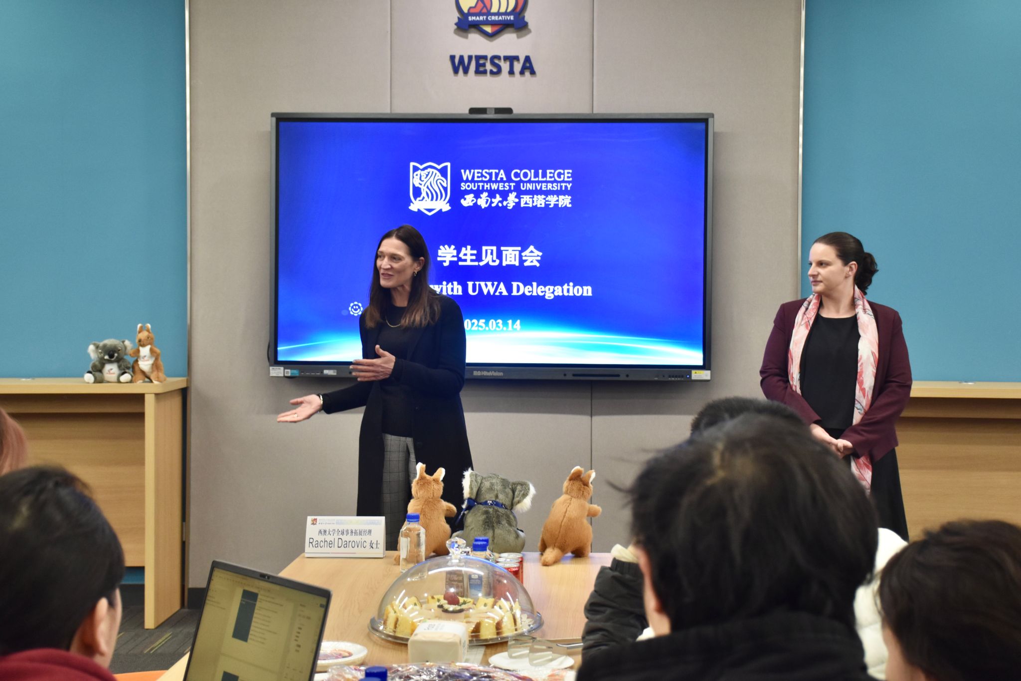 3月14日,西澳大学全球事务拓展负责人Rachel Darovic女士、分子科学公司教师Alyssa Van Dreumel博士,AEMG代理副总裁Nick Letch教授一行访问太阳成集团tyc522cc,三方就员工成长、教师发展及未来合作等事宜进行探讨。针对员工不同学业阶段需求,公司分别组织了学业规划会、行前见面会及升学就业座谈会,代表团成员,公司经理谢洁、党委副书记滕超、副经理何兴及相关科室负责人参加了上述交流活动。