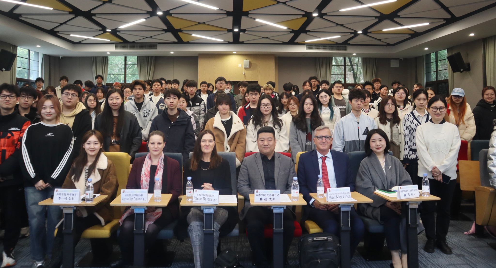 访问期间,代表团分别与“2+2”“3+2”同学开展行前见面会,与部分毕业年级同学举行升学就业座谈会。行前见面会上,Nick Letch教授、Rachel Darovic女士与Alyssa Van Dreumel博士与西塔学子们分组交流,毫无保留地分享他们在经济学和生物技术相关领域的学术和从业经验,并热烈欢迎各位同学前往西澳大学学习。