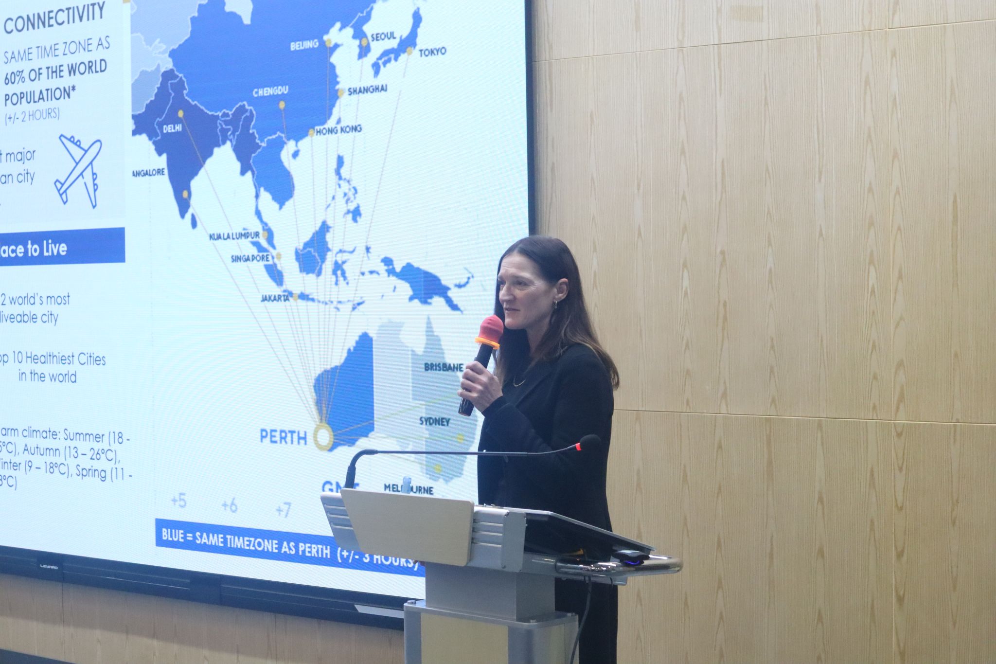 会后,代表团与2024级经济学、生物技术专业100余名同学共同交流,详细介绍了西澳大学的学术资源、毕业生就业与薪资优势、研究生深造机会,并通过员工案例分享,为大一学子提供发展路径参考。