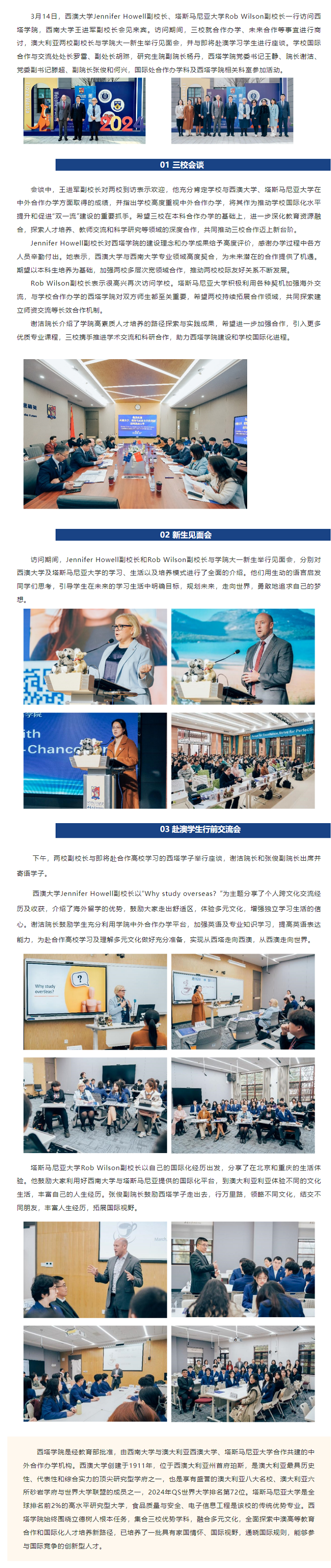 澳大利亚西澳大学、塔斯马尼亚大学副董事长到访公司