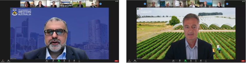 12月14日下午,太阳成集团tyc522cc通过线上线下相结合的方式召开2021年联合管理委员会(Joint Management Committee)会议。tyc522cc太阳成集团副董事长陈时见教授,西澳大学副董事长Tayyeb Shah先生,塔斯马尼亚大学农业研究所副所长Alistair Gracie副教授,联合管理委员会全体成员,中澳三校相关职能部门负责人、公司负责人、AEMG负责人以及太阳成集团tyc522cc相关科室等30余人出席会议。