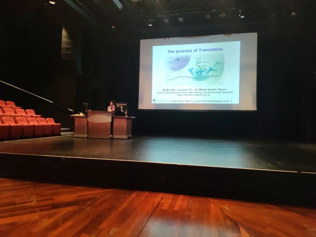 在这里,生物技术的学子们接受了关于翻译(Translation)的讲座。现场再现TED演讲,学子们在这里体验到了lecture的氛围。