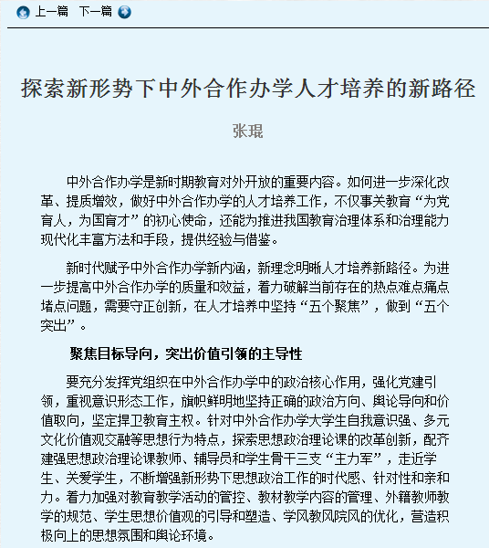 探索新形势下中外合作办学人才培养的新路径——公司教师张琨在《中国教育报》上发表署名文章