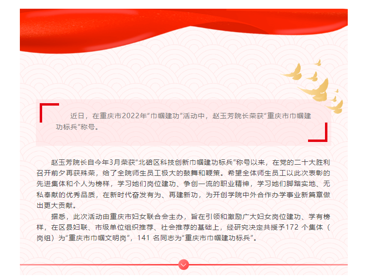 赵玉芳经理荣获“重庆市巾帼建功标兵”称号